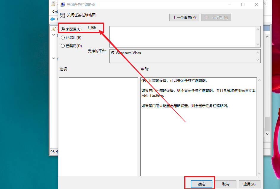 4、 雙擊打開該選項后,選擇“未配置”并點擊“確定”即可